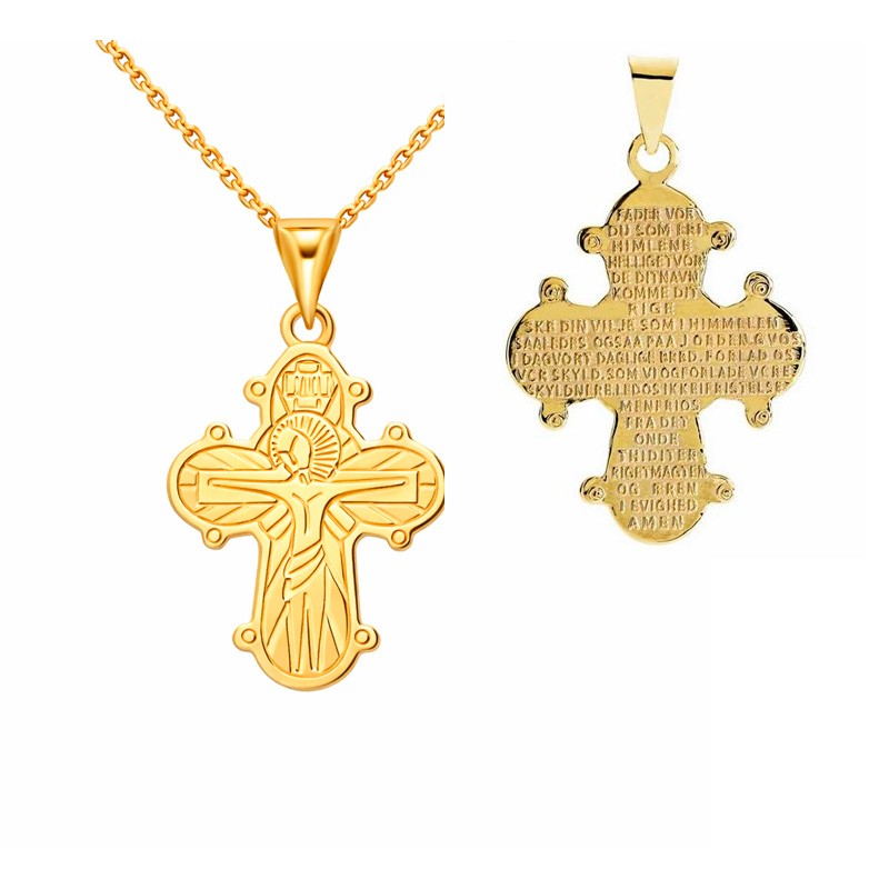 Dahl Facet kors vedhæng forgyldt 30×20 mm inkl. kæde